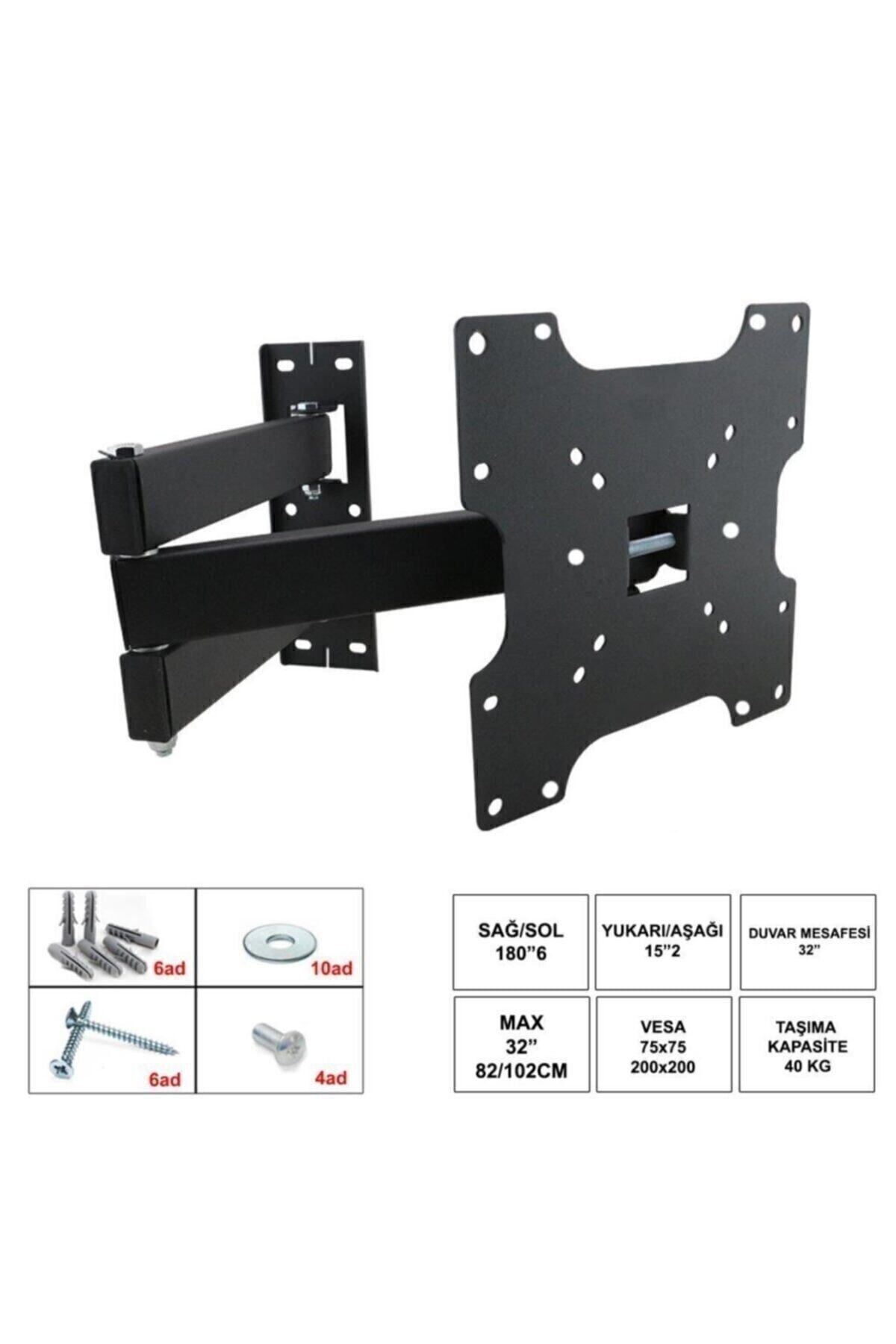 Onvo 32'' Inç 82 Ekran Uyumlu Çift Kollu Televizyon Hareketli Duvar Askı Aparatı Lcd Led Uyumlu