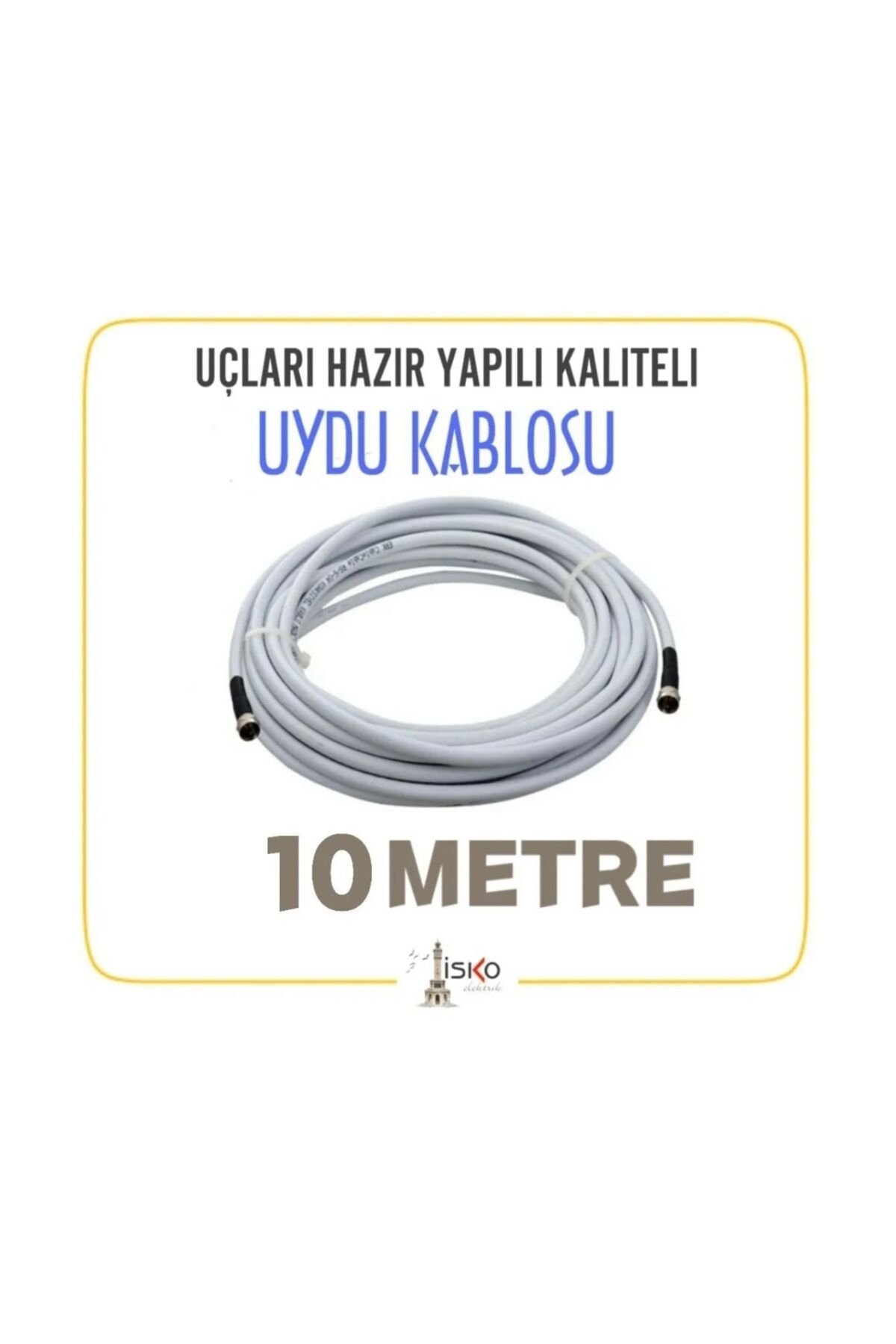 uçlarında konnektör olan uydu kablosu; 10 metredir ve direk kullanıma hazırdır;