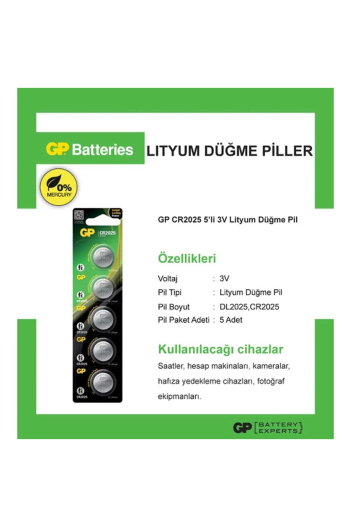 Gp Cr2025 3V Lithium 5Li Kartela Kimyası : Lithium, Lityum Voltajı :3V Boyutu :20.0 x 2.5 mm Ağırlığı : 2.5 gr Menşei : China Raf Ömrü : Lityum hafıza pili, Şarj edilemez, Yaklaşık 10 yıl raf ömrü