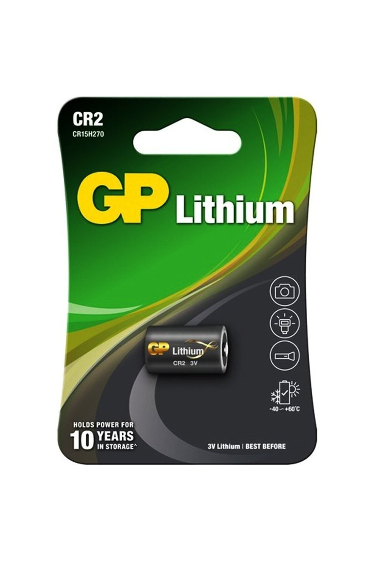 GP CR2 3 Volt Lityum Fotoğraf Makinesi Pili Özellikleri Genel Tanım : Fotoğraf Makinesi Pili; Kimyası : Lityum; Voltajı : 3 Volt; Çevre dostu; Pil Sayısı : 1 Adet; Ağırlık : 10 g; Boyutu : 15.6 x 27 mm; Çalışma Sıcaklığı : -40°C to 60°C; Mükemmel performans; Diğer Kodlar : DLCR2, DLCR2B, RLCR2, KCR2, EL1CR2, RLCR2-L, CR-2, 5046LC; Şarj edilmez; Model : CR2-2UE1;