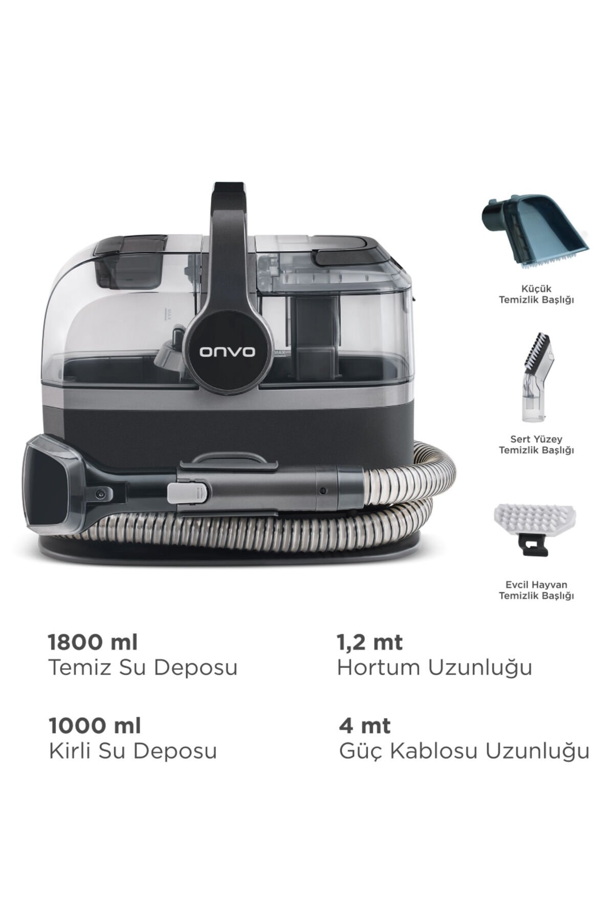 - 500 ila 1000 Watt arası güç kapasitesiyle, zorlu lekeleri bile kolayca çıkarır ve derinlemesine temizlik sağlar.;- Şık siyah renk tasarımı ile ev dekorasyonunuza modern bir dokunuş ekler.;- Sulu özelliği sayesinde halı ve koltuklarınızda su bazlı temizlik imkanı sunar, leke çıkarma işleminde etkilidir.;- Resmi distribütör garantisi ile güvenilir bir kullanım deneyimi vaat eder; herhangi bir sorun karşısında destek alabilirsiniz.;- Web Color'ı siyah olarak belirlenmiştir, böylece ürününüzün görünümüyle uyumlu bir estetik sağlar.;- 2 yıl garanti süresi ile uzun vadeli kullanım için ekstra güvence sunar; olası arızalarda endişelenmenize gerek kalmaz.;- Türkiye menşei garantisiyle yerel üretim kalitesini evinizin konforuna taşır. ;- Tamir edilebilir olması sayesinde, satıcı ile iletişime geçerek olası teknik sorunlara çözüm bulabilirsiniz.