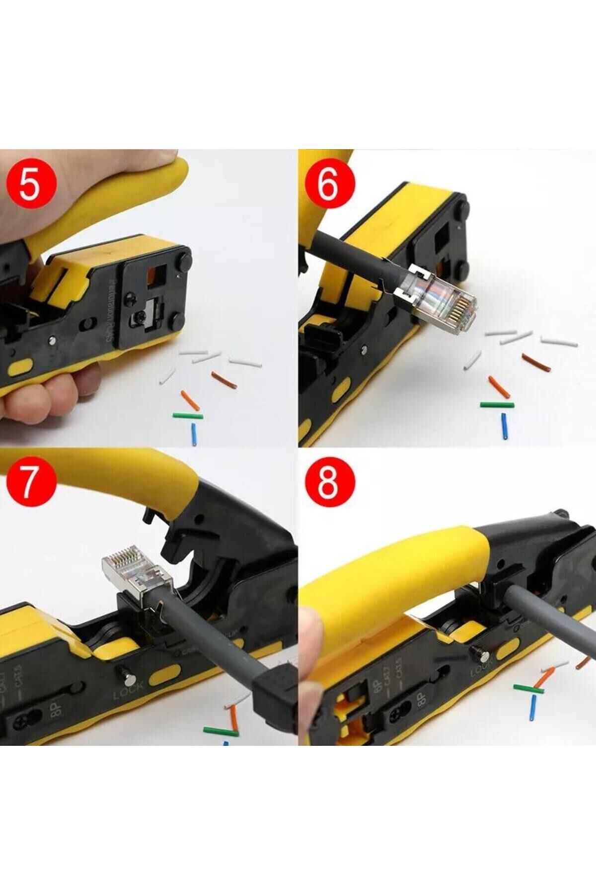 Rose RC-812 Cat5/Cat6/CAT7 EZ-RJ45-RJ11 Konnektör Sıkma Pensesi EZ-RJ45 Sıkma Kesme Özelliği RJ11,RJ12 ve RJ45 veya Cat5/Cat6/Cat7 jack için İdeal sıkıştırma kuvvetini uygulayacak şekilde tasarlanmış Çok fonksiyonlu Pratik kullanışlı