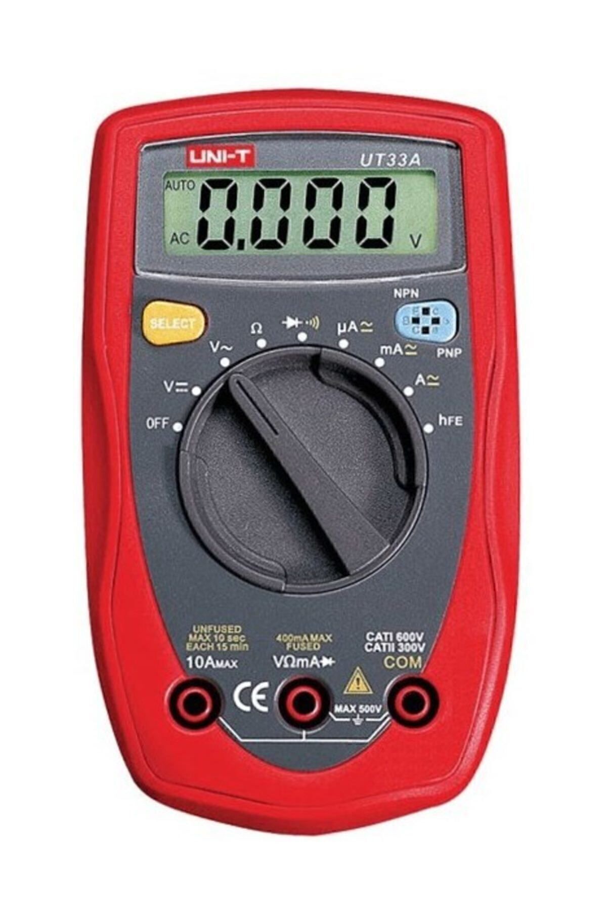 UNI-T UT 33A Dijital Multimetre UNI-T UT 33A Dijital Multimetre yenilikçi endüstriyel tasarımı ile 2 metre yüksekten düşüşe dayanabilmesini sağlamaktadır.; UNI-T UT 33A Dijital Multimetre yeni nesil standartlarını yeniden tanımlamaktadır.; Yeni LCD ekran düzeni daha iyi bir kullanıcı deneyimi sunuyor.; UT33 serisi güvenlik standartları, kullanıcıların CAT ll 600V ortamında güvenle çalışabilmelerini sağlamak için geliştirilmiştir.; UNI-T UT 33A Dijital Multimetre Özellikleri 1. Clear LCD ekran 2. rahat koruyucu kapak ile donatılmış, test kurşun asılı yuvası 3. hassas koruma ile 2m damla geçirmez 4. Otomatik kapanma 5. Otomatik arka ışık kapalı 6. yüksek sesli buzzer 7. Ergonomik tasarımlı döner anahtarÖzellikler 1. Clear LCD ekran 2. rahat koruyucu kapak ile donatılmış, test kurşun asılı yuvası 3. hassas koruma ile 2m damla geçirmez 4. Otomatik kapanma 5. Otomatik arka ışık kapalı 6. yüksek sesli buzzer 7. Ergonomik tasarımlı döner anahtareni LCD ekran düzeni daha iyi bir kullanıcı deneyimi sunuyor.; UT33 + serisi güvenlik standartları, kullanıcıların CAT ll 600V ortamında güvenle çalışabilmelerini sağlamak için geliştirilmiştir.; Ana Özellikler 1. Clear LCD ekran 2. rahat koruyucu kapak ile donatılmış, test kurşun asılı yuvası 3. hassas koruma ile 2m damla geçirmez 4. Otomatik kapanma 5. Otomatik arka ışık kapalı 6. yüksek sesli buzzer 7. Ergonomik tasarımlı döner anahtar, tanıtım amaçlı dijital multimetreler için standartlarını yeniden tanımlamaktadır.; Yenilikçi endüstriyel tasarımımız, bu ürünlerin 2 metre düşüşe dayanabilmesini sağlar.; Yeni LCD ekran düzeni daha iyi bir kullanıcı deneyimi sunuyor.; UT33 + serisi güvenlik standartları, kullanıcıların CAT ll 600V ortamında güvenle çalışabilmelerini sağlamak için geliştirilmiştir.; Ana Özellikler 1. Clear LCD ekran 2. rahat koruyucu kapak ile donatılmış, test kurşun asılı yuvası 3. hassas koruma ile 2m damla geçirmez 4. Otomatik kapanma 5. Otomatik arka ışık kapalı 6. yüksek sesli buzzer 7. Ergonomik tasarımlı döner anahtar