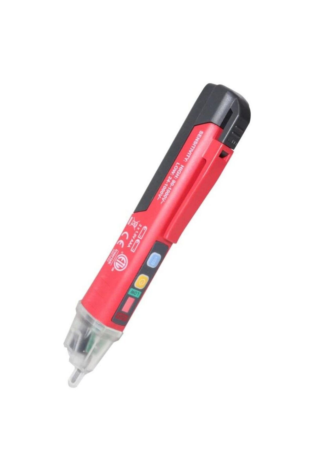 Uni-t Ut12d-row Temassız Voltaj Dedektörü UT12D-ROW AC Voltaj Dedektörü UT12 serisi temassız AC voltaj dedektörleri, iletkenler, kablolar, prizler ve diğer elektrikli / elektronik cihazlar gibi düşük voltajlı ekipmanların bakımında yaygın olarak kullanılmaktadır. ; Elektrikçiler için çok kullanışlı bir araçtır. ; Özellikleri: 1. ; Otomatik güç o ? 2. ; Buzzer 3. ; LED göstergesi 4. ; AC voltaj algılama 5. ; Yüksek / Düşük voltaj modu Uygulamalar: Düşük voltaj modu: Düşük voltajlı motor (<90V), ses sistemleri, ark kaynağı makineleri, yeraltı maden aydınlatması, kalın yalıtım tabakalı kablolar ve diğer zayıf elektromanyetik AC sinyaller. ; Yüksek voltaj modu: Kentsel elektrik kaynağı ve üç fazlı sistemler (90 ~ 1000V). ; Örneğin, güç dağıtım üniteleri, elektrik panoları, elektrikli aletler.;